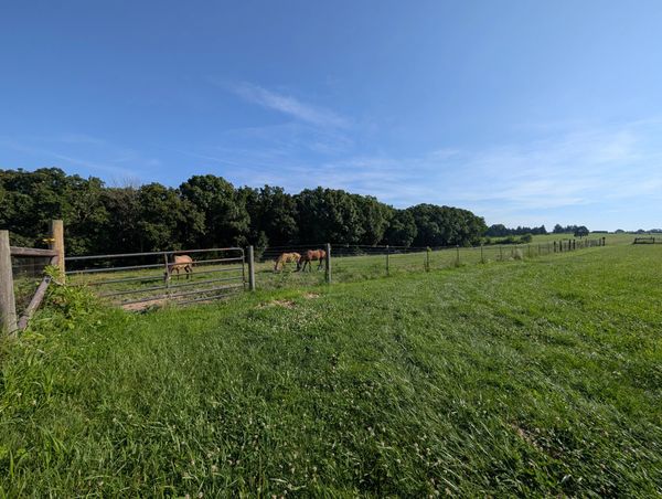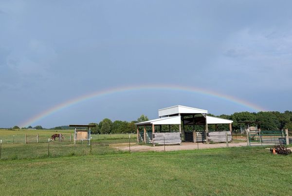 Group pasture turnout 24/7 in the summer. Large dry lot with round bale in the winter. All pastures have automatic waterers. Horses will be fed grain and boarder provided supplements twice daily. Board includes up to two blanket changes a day (blankets provided by boarder).